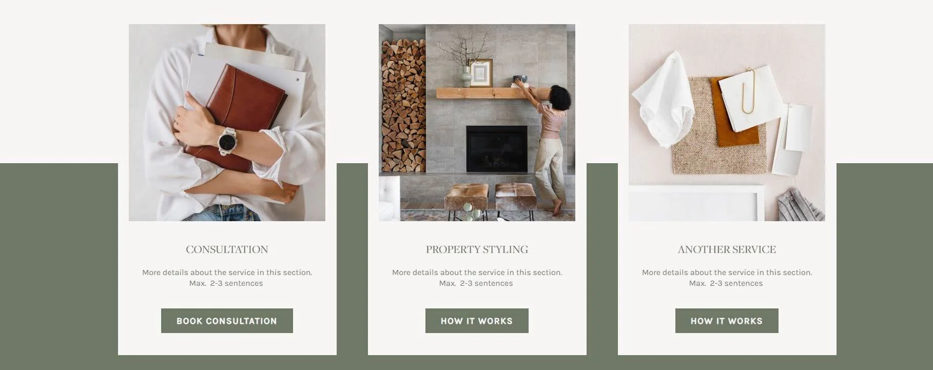 Portfolio pages are a great feature for interior designers, home stagers or photographers (or anyone with a portfolio). You can check it out on my one-week website Ava template.